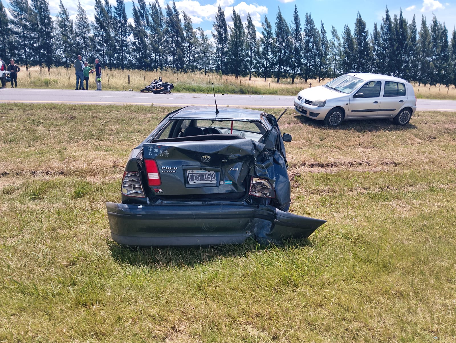 El siniestro tuvo como protagonistas a los ocupantes de una moto de alta cilindrada y al conductor de un Volkswagen Polo Classic. Según informaron fuentes del caso, a primera vista habría un golpe del rodado menor sobre el baúl del vehículo de mayor porte. Es decir, se trató de una colisión por alcance.