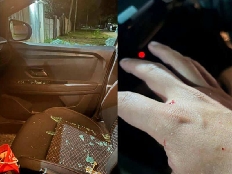 Por seguridad no se detuvo y continuó hasta su domicilio, donde constató que presentaba cortes superficiales. El denunciante sostuvo que, de haber llevado un acompañante, las consecuencias podrían haber sido mucho más graves.