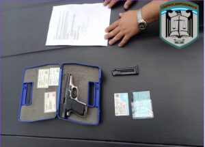 Se supo que entregó un arma de fuego, que tenía las credenciales correspondientes, la cual será ahora peritada con los casquillos y vainas secuestradas en la escena del ataque, aunque en principio se sospecha que no habría sido detonada, al margen de que se deberá aguardar el resultado del informe técnico. El coche también quedó bajo secuestro.